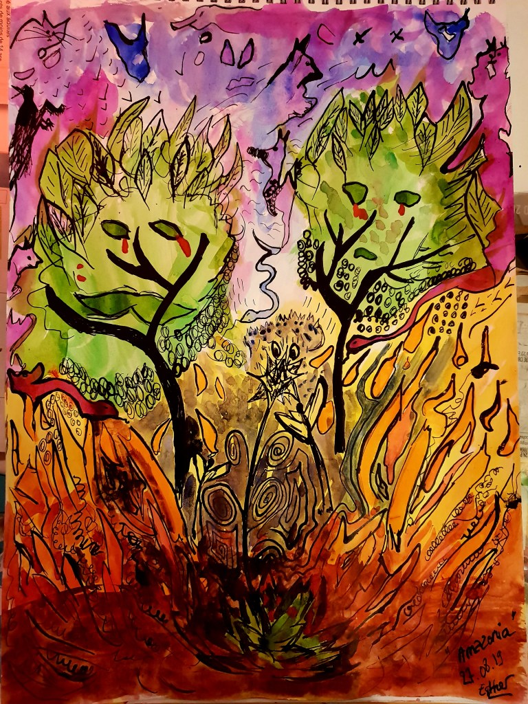 - 4- « Amazonie Brûlante », Aquarelle Encre de Chine, 2019