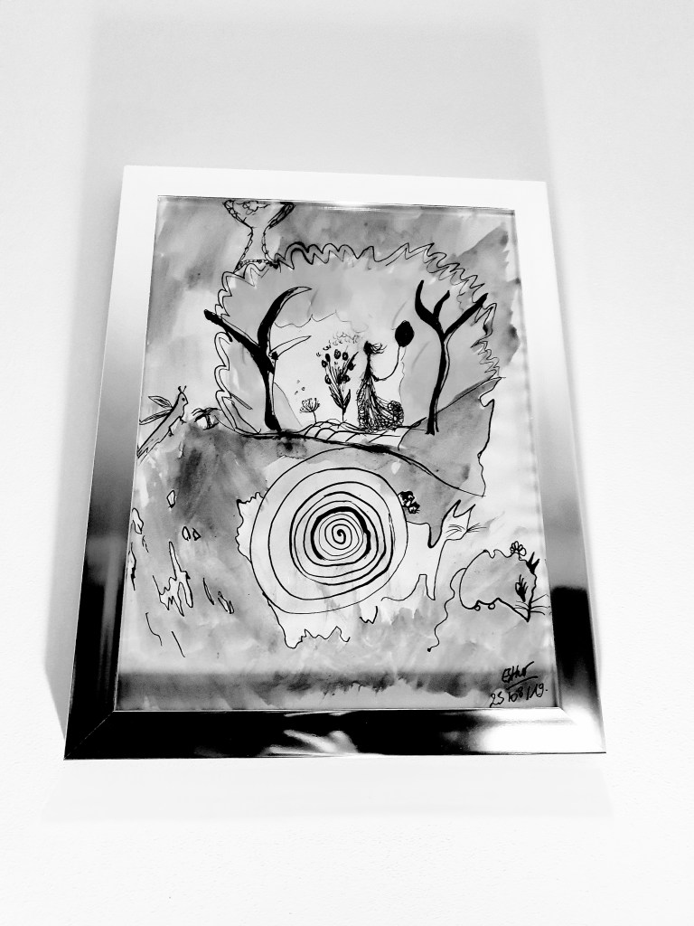 - 1- « Isabelle », Aquarelle Encre de Chine, 2019 (black&white)