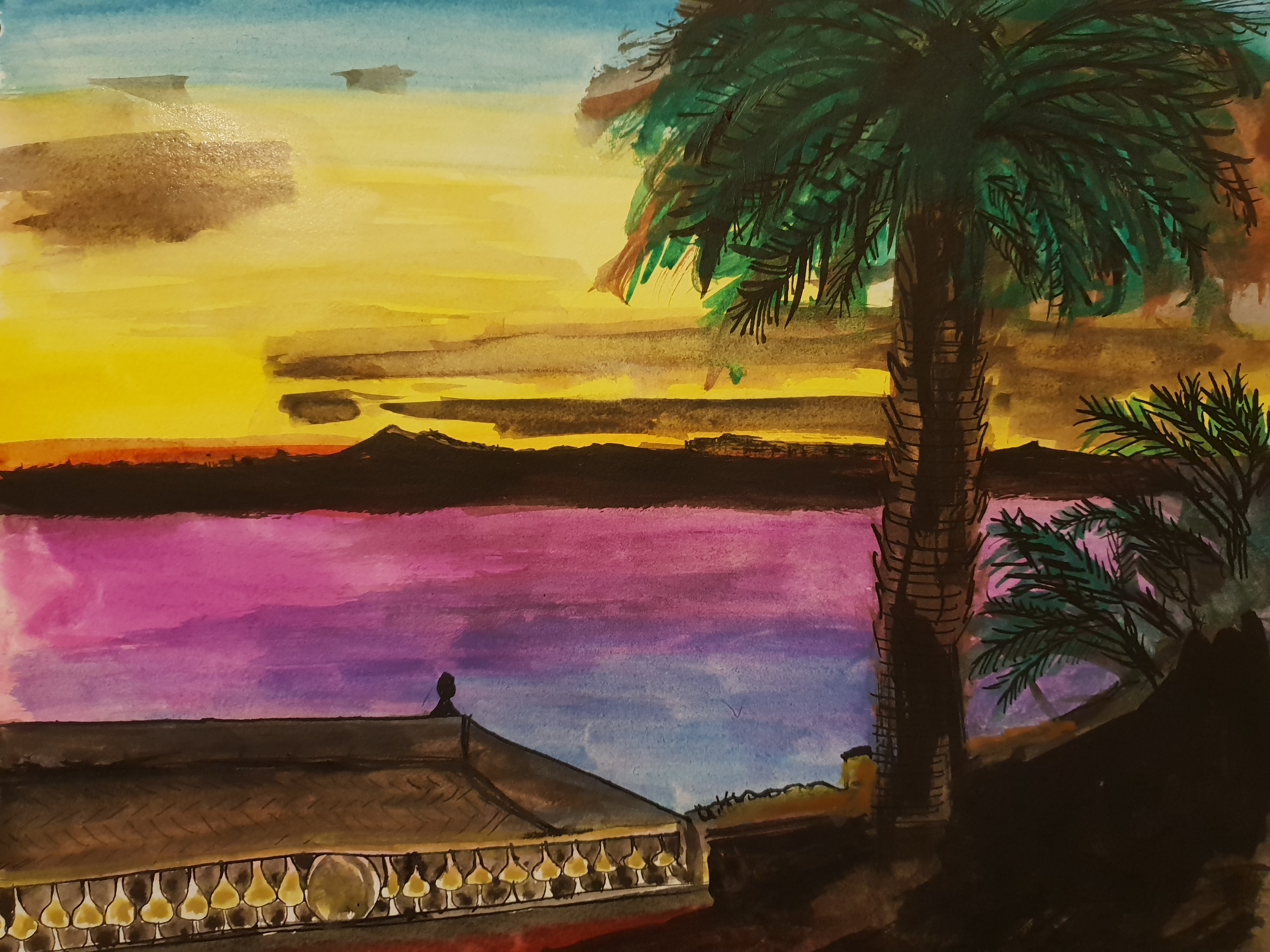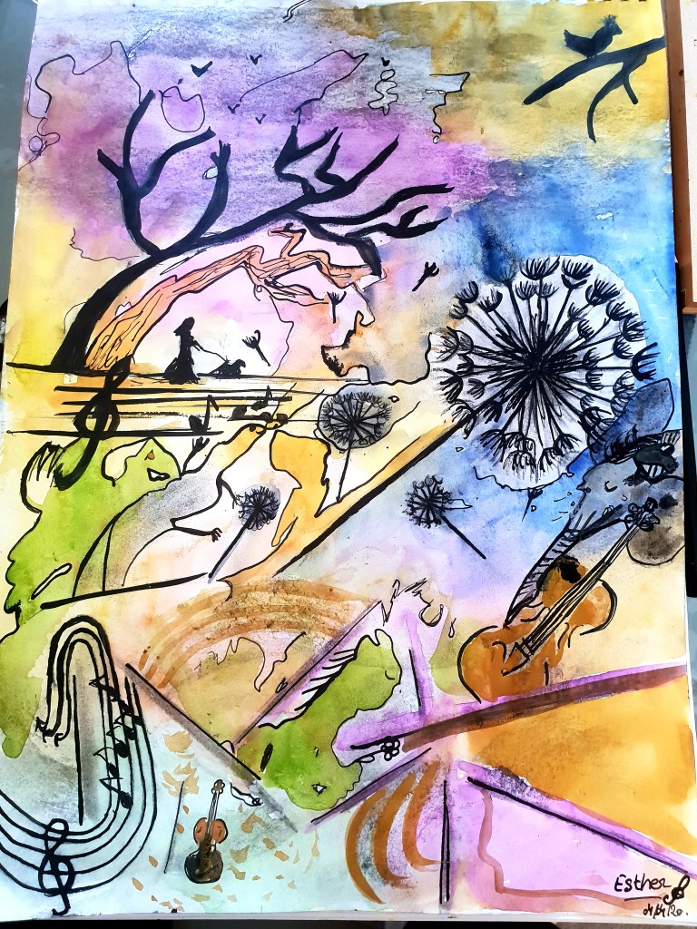 - 8-« Orchestre et promenade », Aquarelle Encre de Chine, 2020